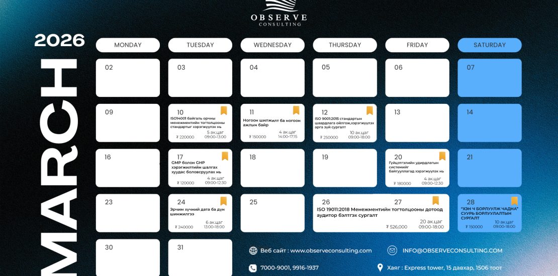 ISO 9001:2015 стандартын шаардлагыг ойлгож, хэрэгжүүлэх арга зүй сургалт