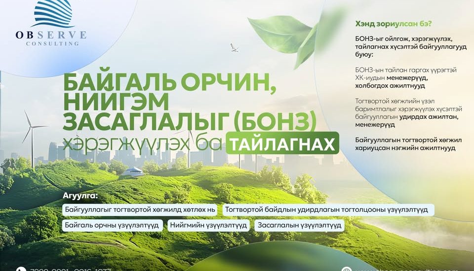 ISO 14001 Байгаль орчны менежментийн тогтолцоо хэрэгжүүлэлт